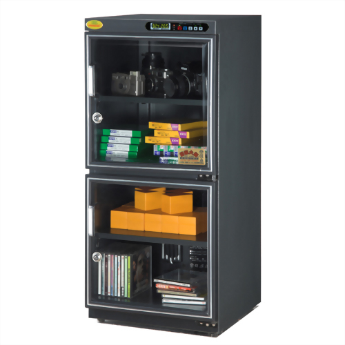 ● Standard Digital dehumidify cabinet equipped with 1mm galvanized steel housing plus 5mm thick glass panel.