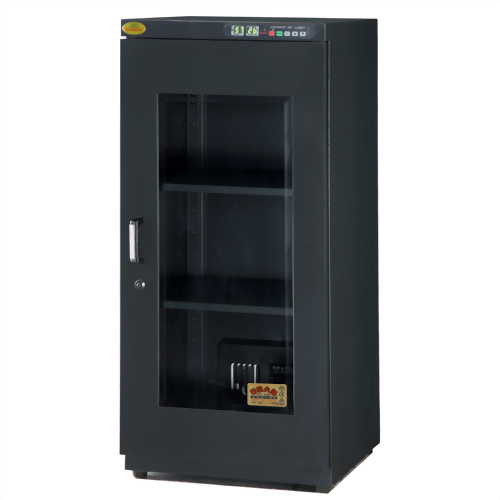 ● Standard Digital dehumidify cabinet equipped with 1mm galvanized steel housing plus 5mm thick glass panel.
