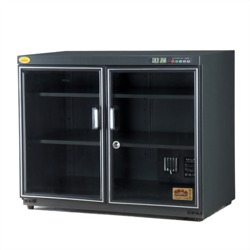 ● Standard Digital dehumidify cabinet equipped with 1mm galvanized steel housing plus 5mm thick glass panel.