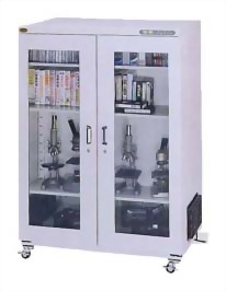 ● Standard Digital dehumidify cabinet equipped with 1mm galvanized steel housing plus 5mm thick glass panel.